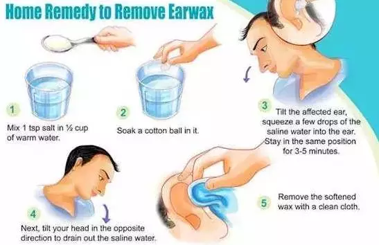 可以用盐水清理耳朵。将盐水滴入耳道中,摇晃几下,然后冲洗干净。
