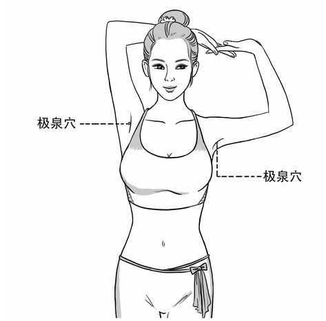 极泉穴不仅具有宽胸理气的作用,还可以快速回阳,引血上行,使头脑快速清醒。这个特殊的治疗手法就是弹拨和拍打。遇到生气后心胸气短时,就可以用四指在腋窝正中轻轻地弹拨。我们在弹拨的时候,能明显地感觉到有一条经筋,这条筋的正中就是极泉穴。极泉穴可以治疗人生气发怒后气滞血淤、运行不畅引起的胸闷、气短、心悸、心悲欲哭、手臂胀麻等症状,此时弹拨极泉穴可以增加气血的流通,使人快速平静下来。日常保健时,我们用不着在极泉穴那儿费那么大力气去弹拨,只需要轻轻地拍打即可。平时弹拨拍打两腋下,还可以预防和缓解冠心病、心绞痛等心脏疾病,这相当于我们随身携带的速效救心丸。