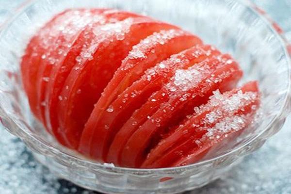 做法:大蕃茄洗净后切成约0.8公分的片状,整齐排列于盘内。将鱼露酱淋在作法1的蕃茄片上,再撒上葱花即可。