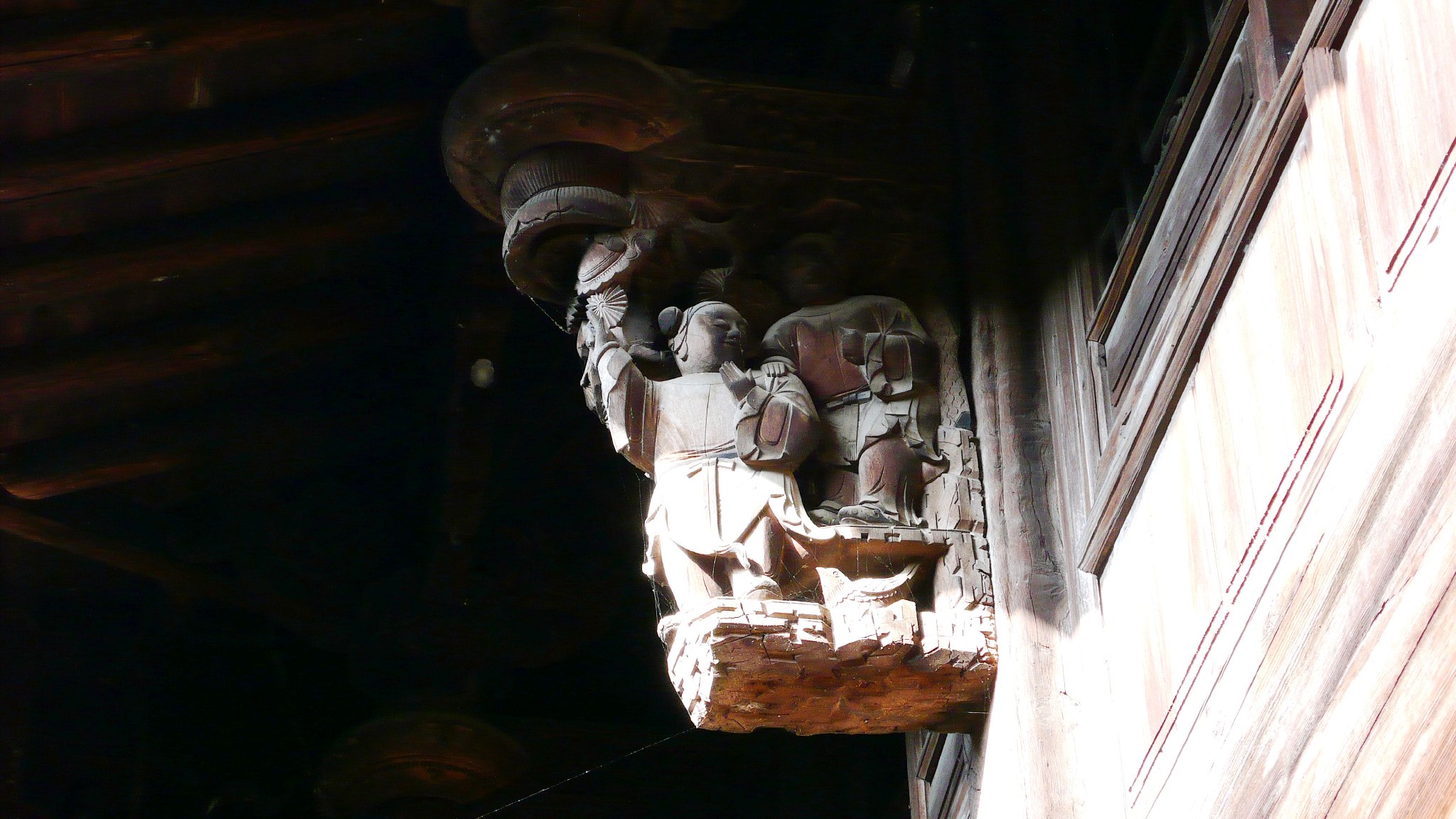 牛腿木雕是中国传统建筑中的一种装饰艺术,通常位于建筑的梁柱、斗拱、门窗等部位。这些木雕以精细的雕刻技艺和丰富的题材著称,展现了中国古代工匠的高超技艺和审美情趣。