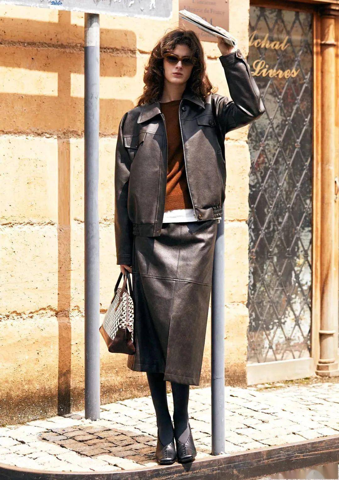 皮裙自带 “硬朗气质”,却因裙装的轮廓保留女性柔美,在秋冬一片柔软单品里格外抢眼 —— 黑棕经典色、简洁裁剪,告别 “轻浮感”,穿起来像 “冷风中的精致都市丽人”。