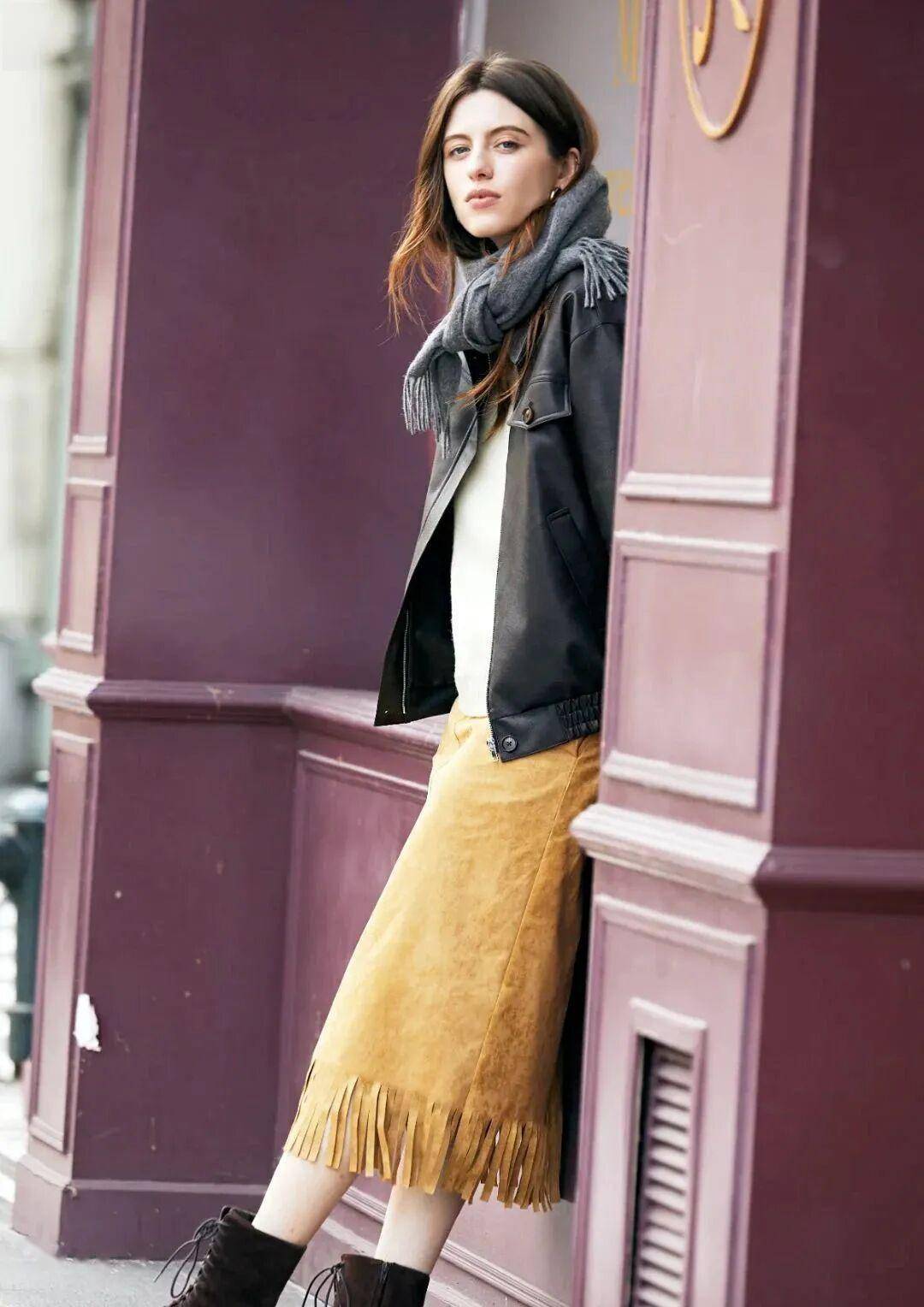 风格平衡:用硬朗单品(如皮衣、夹克)中和裙子的柔美,刚柔并济提升时髦度