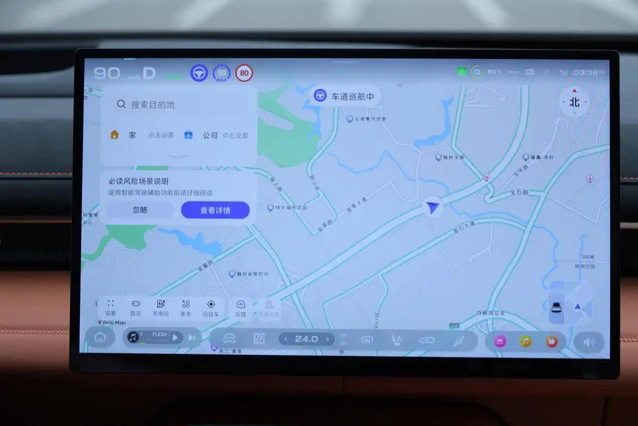 它的 AR - HUD 显示效果非常出色,60 英寸的超大尺寸,将导航箭头、车速等关键信息清晰地投射到前挡风玻璃上,与现实环境完美融合,让你在驾驶过程中,无需转移视线,就能获取重要信息,提高了驾驶的安全性和专注度。而且,AR - HUD 的亮度和清晰度都非常高,即使在阳光强烈的白天,也能清晰可见 。再搭配上 10.25 英寸全液晶仪表和 17.3 英寸 2.8K 悬浮式中控屏,构建了三层信息交互体系,为你带来全方位的智能体验。