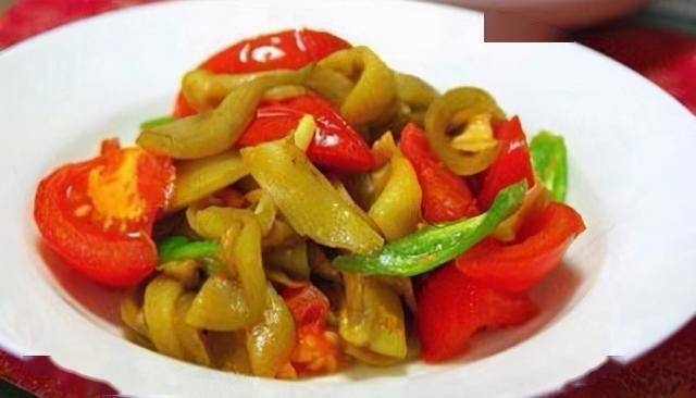 4、加入料酒、生抽、糖和适量的盐翻炒均匀。5、放入适量的清水烹制,烧至汤汁块干时放入青椒翻炒均匀。6、淋入适量的水淀粉勾芡,再加入少许鸡精淋入香油翻炒均匀即可关火。
