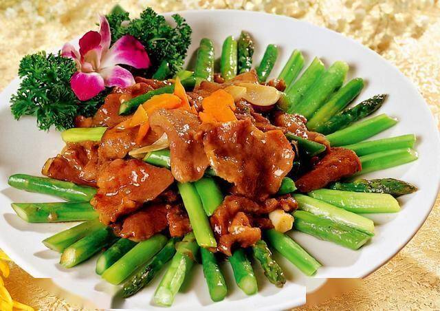 1.将芦笋切去老根洗净,马蹄切片,锅中放水烧开加少许油和盐,放入芦笋和马蹄一起水里略煮,倒出过冷水备用;猪肉切片