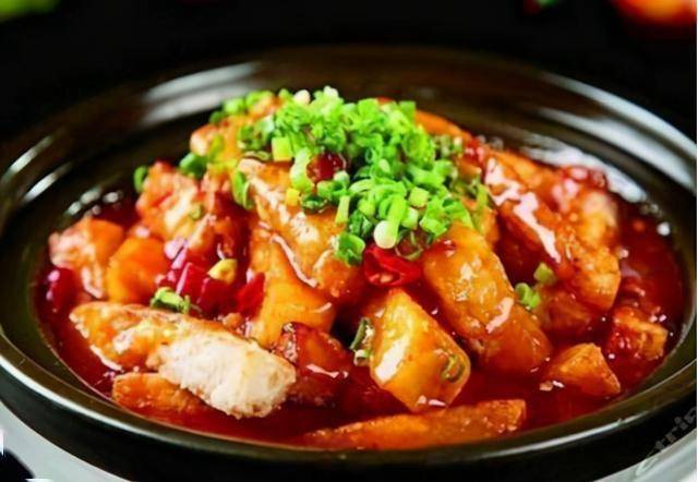 2.净锅放适量的菜油和红油,下大蒜、干辣椒节和花椒炝香后,放干锅酱炒几下,接着倒入鱼头和基围虾,加盐、味精和青花椒油炒匀便盛入干锅即成。