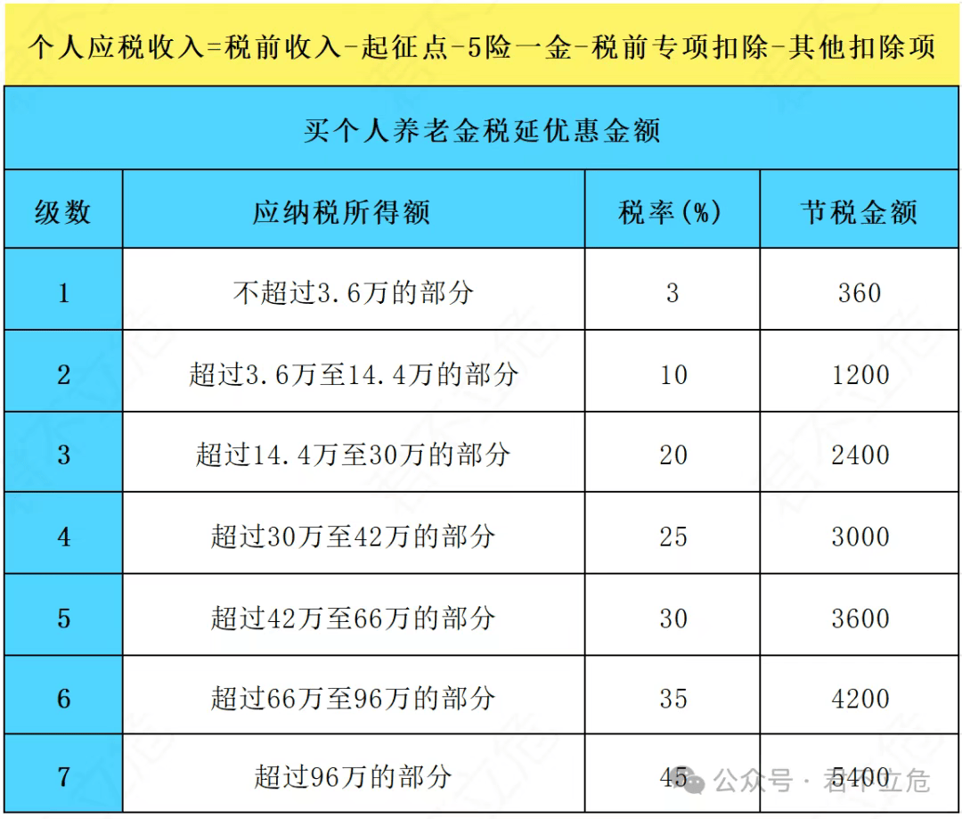 政策规定的是:个人养老金每年最高可以存1.2万,按这个年存来算,每年能省下360元到5400元不等的税款,具体抵税额度要看各自的税率。