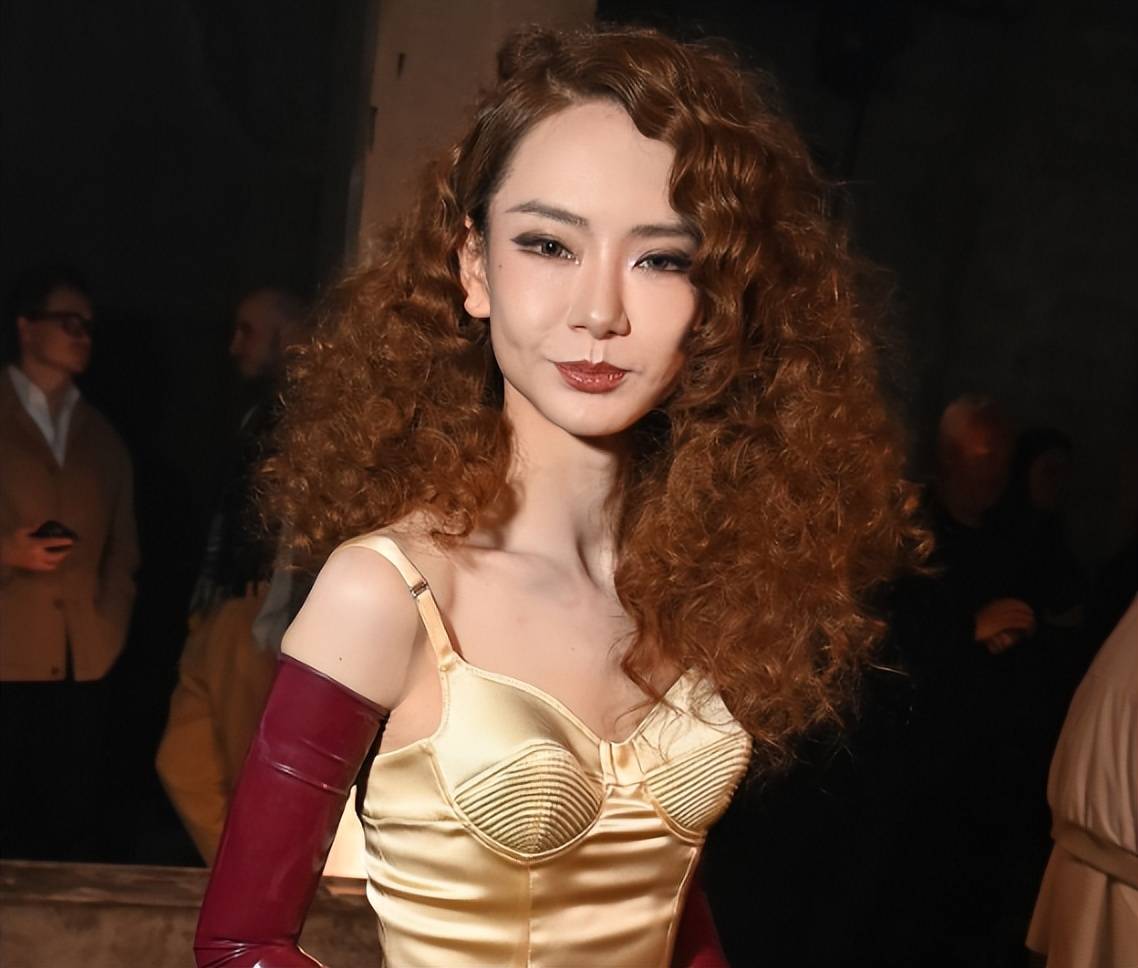 2025年巴黎时装周期间,戚薇的造型引发广泛争议。她身着Mugler品牌的香槟色螺纹吊带长裙,裙身皱皱巴巴显质感廉价;搭配的艳红色皮质手套不仅勒出手臂赘肉,还被调侃像“洗碗工手套”;蓬松毛躁的羊毛卷发型与烟熏眼妆组合,让整体造型显得杂乱,甚至因妆容过于厚重导致面部表情僵硬,被网友评价“五官怪异”“像被拉伸了”。