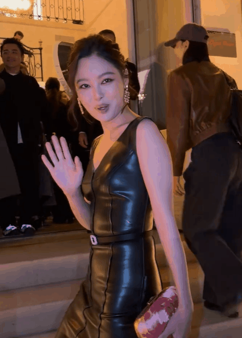 此次巴黎时装周Roger Vivier 2026 春夏系列发布会,辛芷蕾身穿黑色宽肩皮裙亮相活动现场。