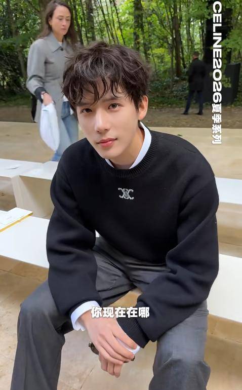 此次巴黎时装周他身穿黑色大衣搭配灰色针织衫和牛仔裤,叠搭的白色打底更具层次感。