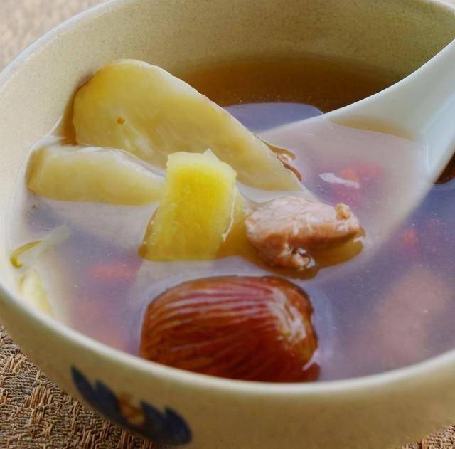 4. 淮杞蜜枣煲瘦肉汤:经典粤式汤品,瘦肉搭配淮山、枸杞、蜜枣慢炖2.5小时,汤色清亮,滋补养生。