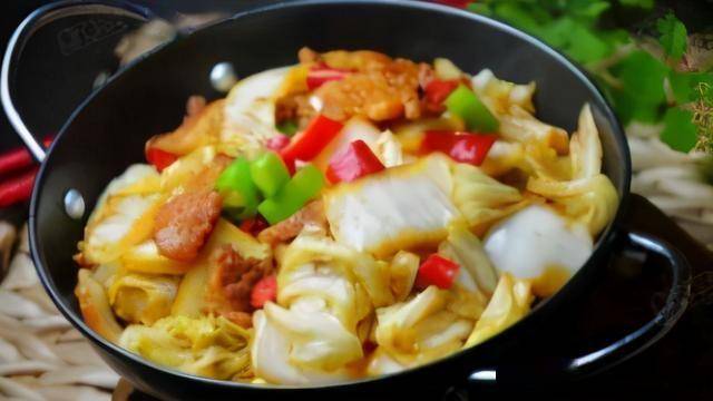 食材:大白菜400g、五花肉100g、葱花适量、红辣椒20g、青辣椒30g、老抽20ml、蚝油15g、白糖2g、盐适量、黄酒10ml、鸡精少许