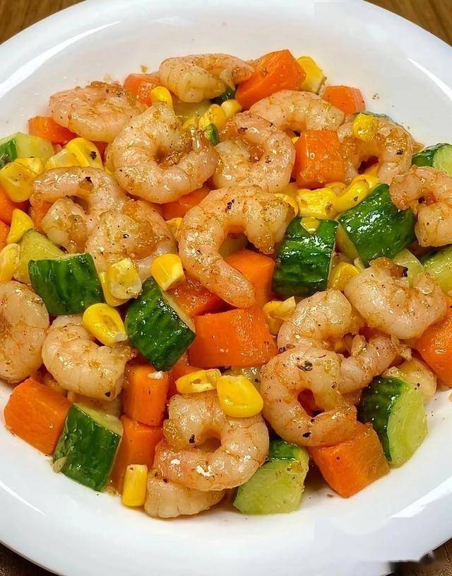特点:虾仁高蛋白低脂肪,胡萝卜和玉米提供维生素,色彩鲜艳且口感丰富。