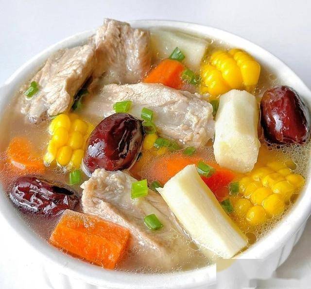 特点:排骨提供动物蛋白,山药和红枣健脾养胃,汤品营养丰富且温和。