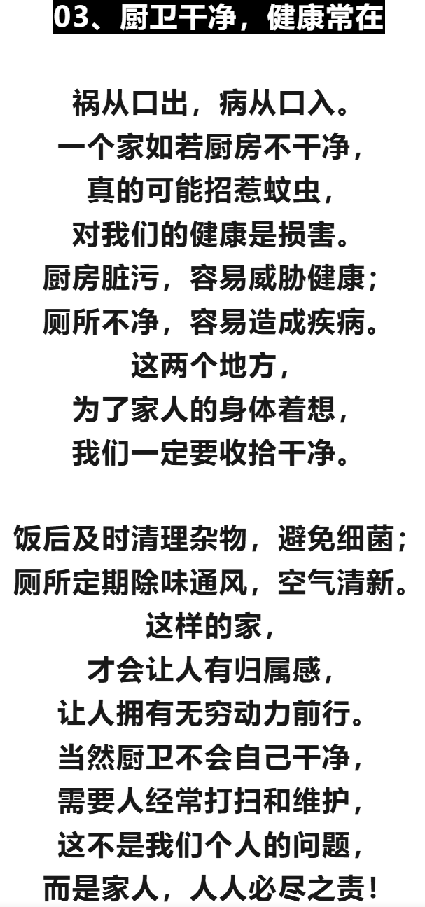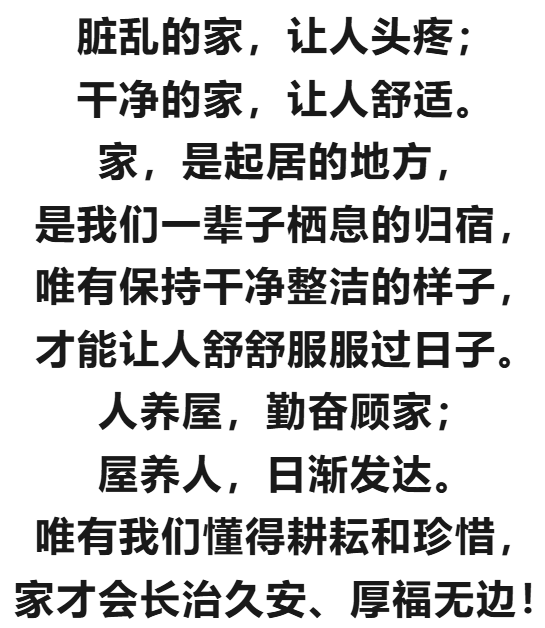 这三个地方——客厅、卧室、厨房——如同家庭的“三根支柱”,它们的洁净状况直接影响着整个家庭的“精气神”。不必追求豪宅大院,只要用心打理好这些细节,即使是小户型也能成为一个充满爱与福气的温馨港湾。让我们从此刻开始,践行“人养屋”的理念,在“屋养人”的回馈中,享受更加健康、和谐、幸福的生活吧!正如古语所言:“家干净了,住着才舒心,生活才有滋味。”