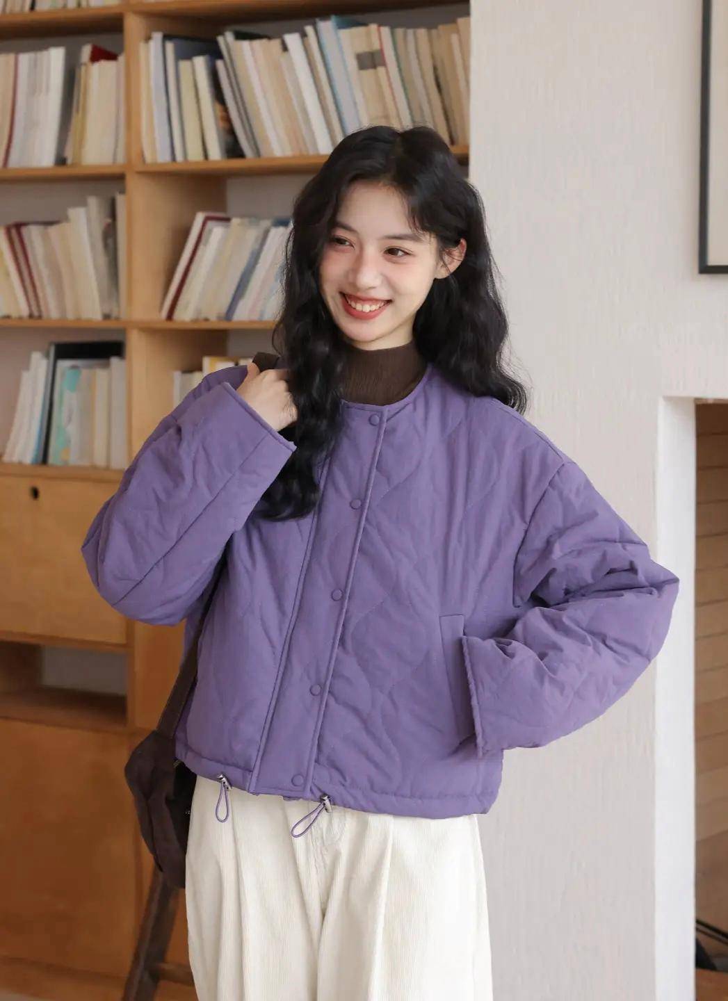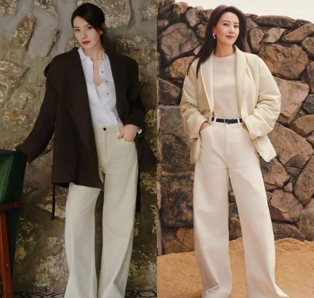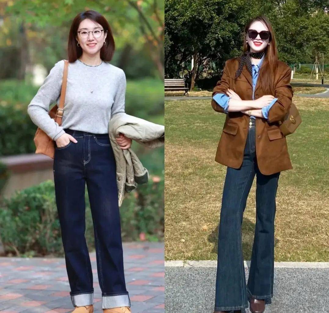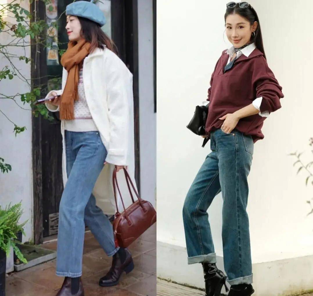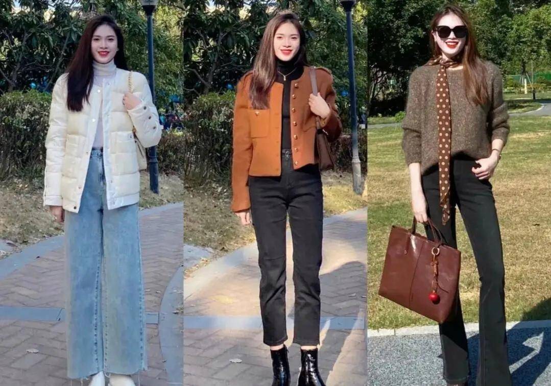 遮肉组合:奶奶棉服+阔腿牛仔裤/垂感西装裤(宽松裤型藏肉,材质碰撞增加层次)。