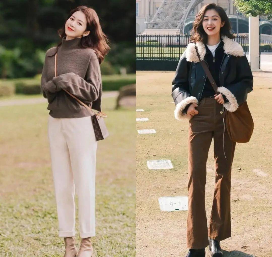 显瘦组合:奶奶棉服+无痕裤(弹性面料贴合腿型,适合腿细人群)。