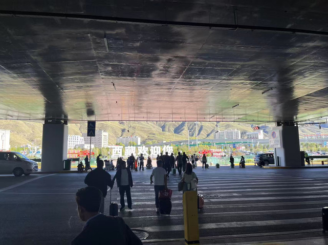 出拉萨机场,左手边就是机场大巴,30一位,直达市中心的汽车站,还是比较方便的。