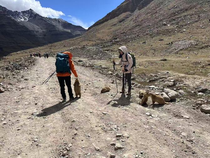 踏上最后的20公里,这段路已经没有太大的爬升了,更多的是漫长的望不到边际的砂土路,亦如我们波澜不惊的后半生。路遇土拨鼠拦路抢劫,虽然已经弹尽粮绝,但这一幕却让人感受到生命的可爱与美好。走着走着,会发现祈福并非只是不停的默念愿望,而是当一切执念放下后,内心的平和与安宁。