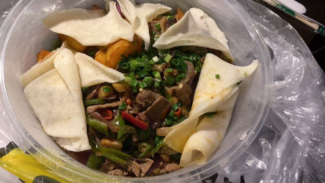 回酒店点了一份外卖,干锅牦牛肉,味道还行,就是有点辣。