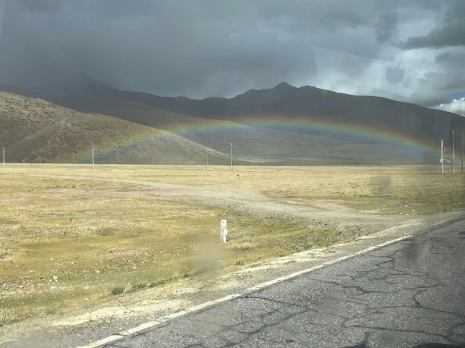 车上的广东大哥说这次过来最大的遗憾就是没看到彩虹,话音刚落,车前方就出现了一条巨大的彩色长龙