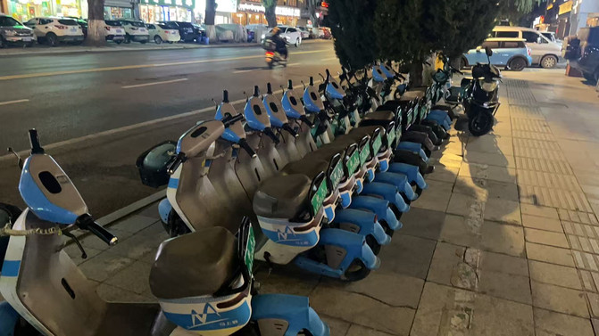 记得第一次骑电动车就在拉萨,相比两年前,现在的电动车更新,停放也更整齐