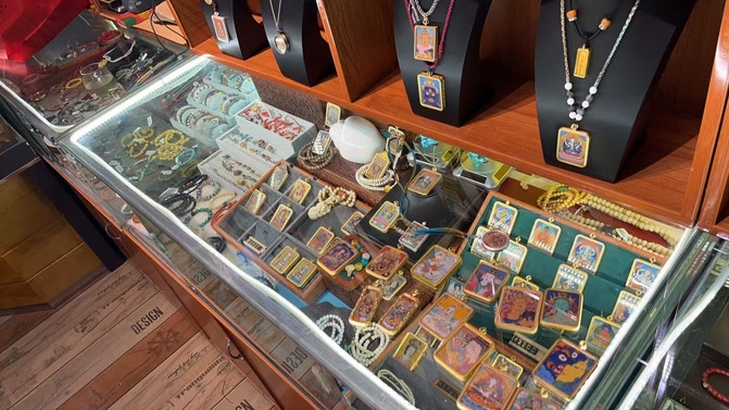 酒店里面空气不好,还是出来走走,帮家人请唐卡