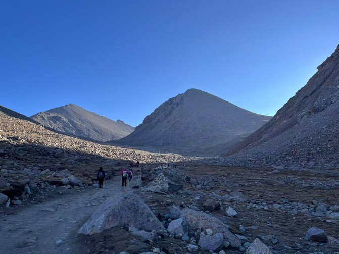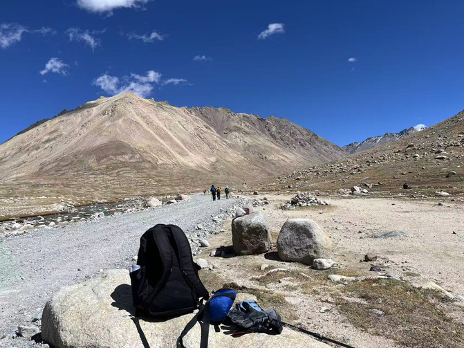 关于装备。其实大多数经验贴都有提到,尽量在保证生存能力的情况下,轻装上阵,毕竟高原徒步,每一斤每一两都是对自身体能的重大负担。垭口风大,无论什么季节都要注意保暖,本人这次内部速干套外面套了抓绒+羽绒+硬壳三件套,感觉刚刚好,戴了羊毛帽,加冲锋衣的帽子,保暖够了,但是防晒不足,面罩一戴就缺氧,只能裸着,除了墨镜的位置,脸上被晒的一塌糊涂。