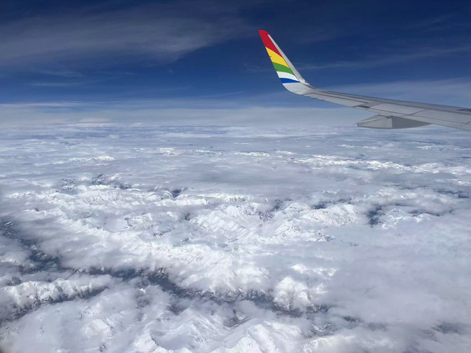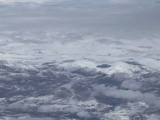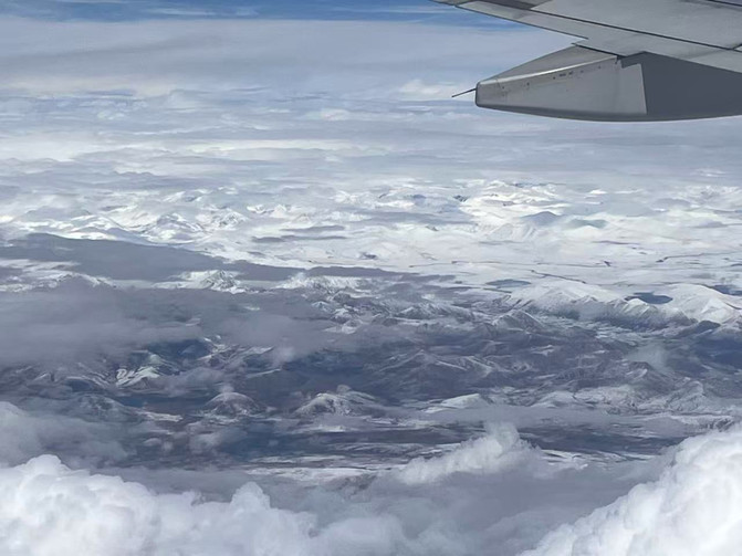 返程时运气好买到了靠窗的位置,得以看见昆仑山和唐古拉山的雪景