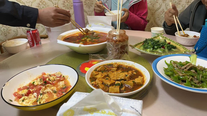 中午在路边的川菜馆吃,30一个人凑了个桌餐,同车的上海阿姨60多了依然活力满满