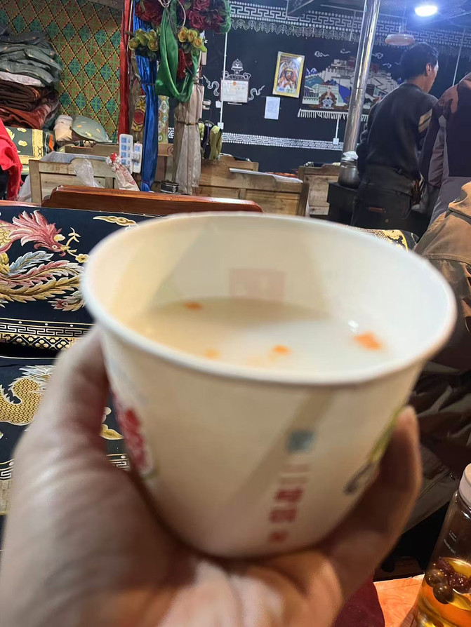 到了天 葬台,才7点,距离日照金山还有一个半小时,而且今天多云转阴,大概率看不到,本想着直接翻卓玛拉垭口,早点回家,忽然心里有个声音劝我等等,再等等。鬼使神差的进了天 葬台的茶馆,喝了一碗粥,吃了两个鸡蛋。一眼看到墙上的扎基娘娘,感谢护佑,事实证明没有这顿早饭,我大概率没有足够的体能完成后续的旅程。