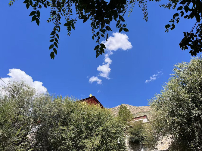 在主干道最高处的一棵树下坐了半小时,除了游客的脚步声,很安静,就剩下风吹过经幡的声音