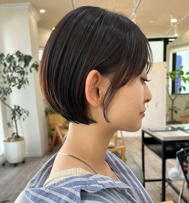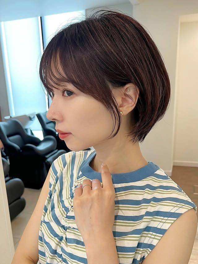 搭配露肩装或金属质感的服饰,它是潮流场的“风格炸弹”,以破格的长度与造型,瞬间成为视觉焦点;即使是简约的白T,也能因这头超短发的加持,呈现出“酷甜交织”的矛盾感。其造型重点在于“线条的尖锐度”,需要发型师对层次与长度的精准把控,日常打理则依赖定型喷雾,以维持发丝的蓬松与线条的硬朗。这种超短鲍勃,是日系美发对“先锋风格”的本土探索,它证明了“短”不仅能是优雅或灵动,更能是突破常规的个性表达。