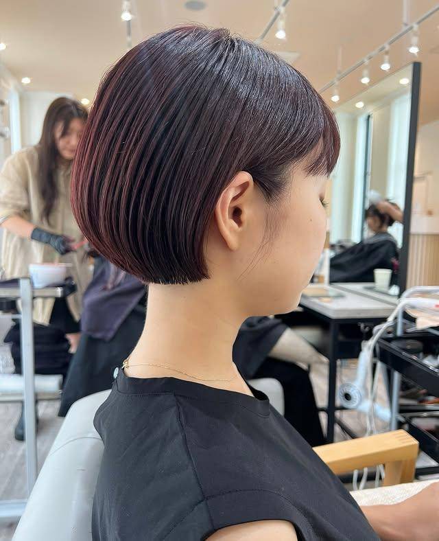 其造型核心在于“线条的绝对规整”,日常打理只需用直板夹轻带发尾,再以发蜡梳理层次,便能维持这份“不费力的精致”。这种经典款短鲍勃,是日系美发对传统的致敬,更是对“优雅永不过时”的生动诠释。