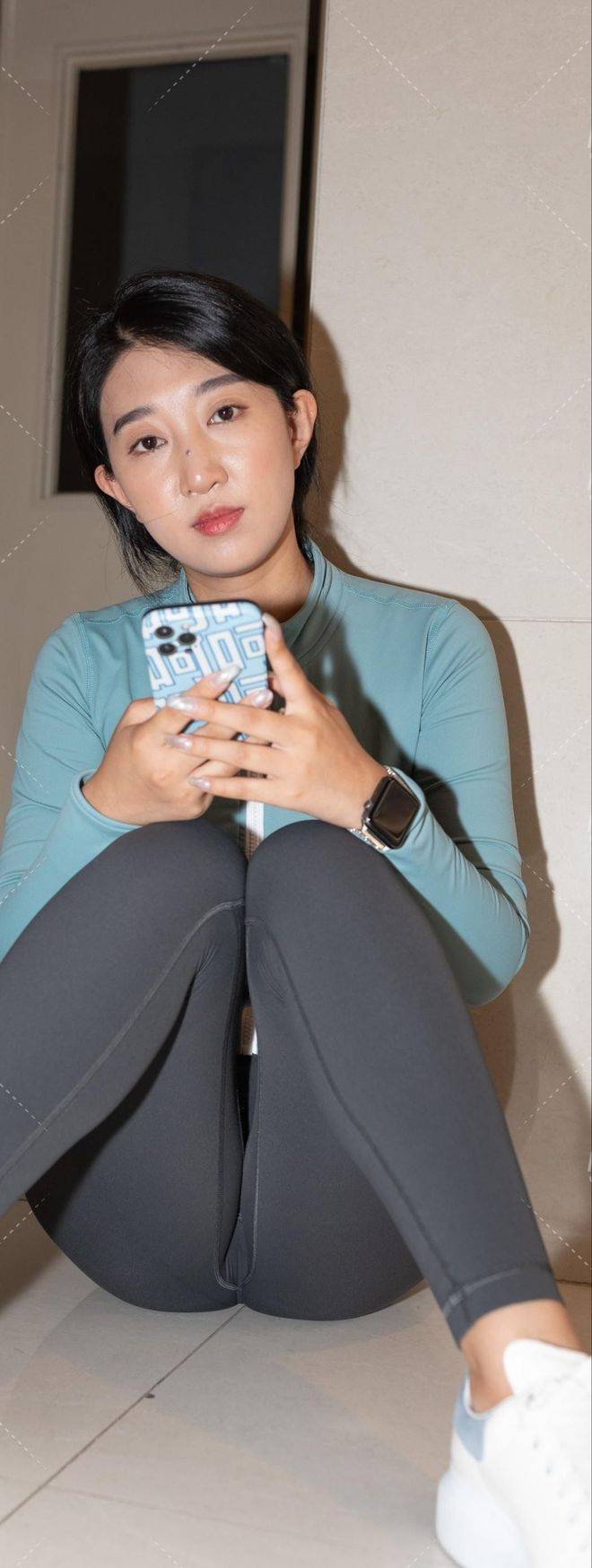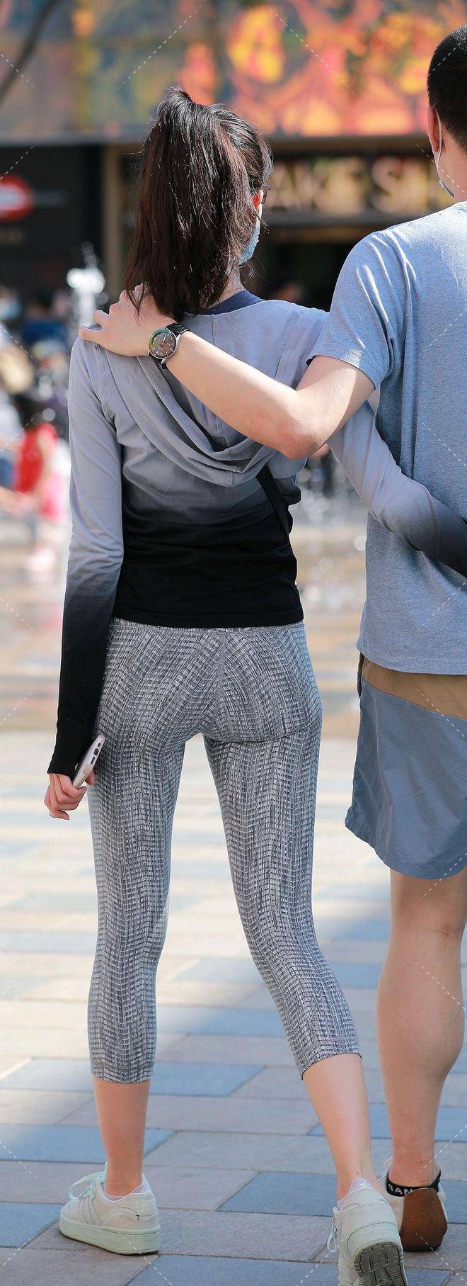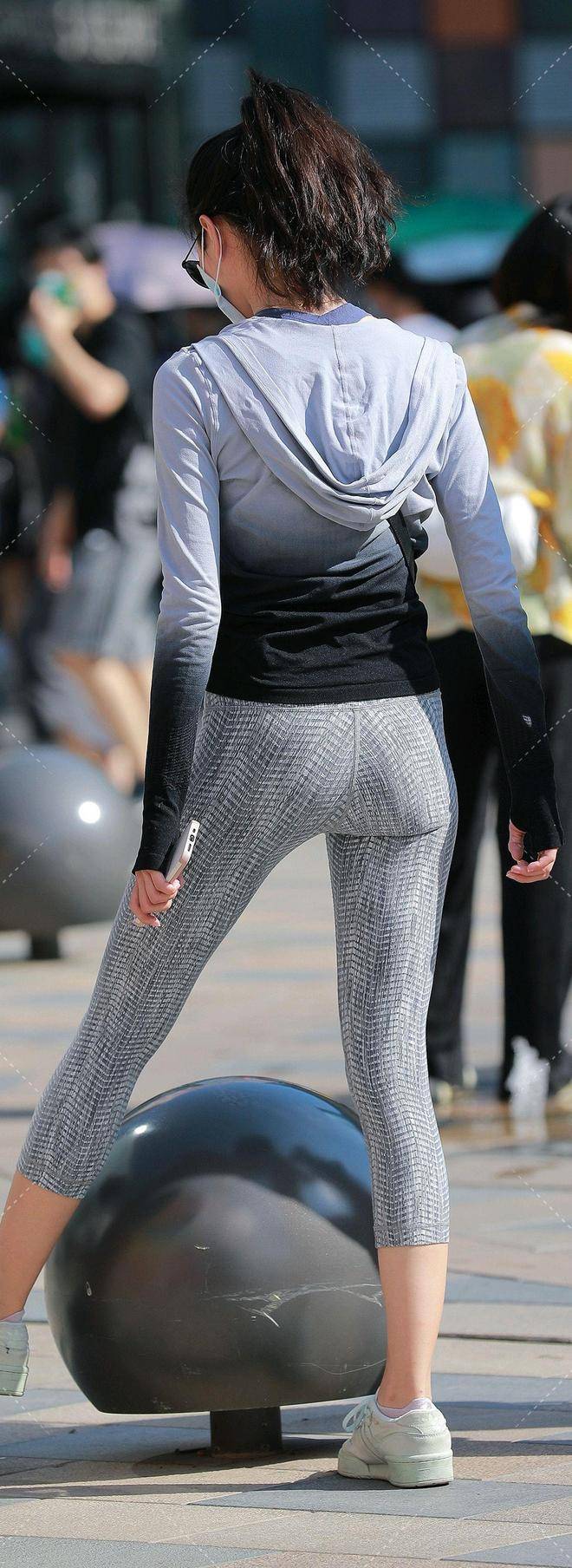 下装瑜伽裤,灰色调细腻纹理,