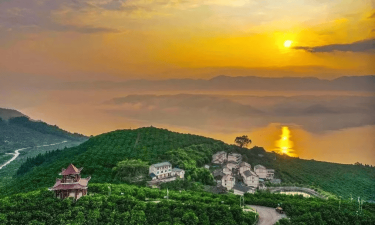 大洪湖波光潋滟映秋色,东篱田园瓜果垂枝。循溪谷探访屏岚秀谷,于阡陌间品味“归田、归溪、归心”的田园理想。