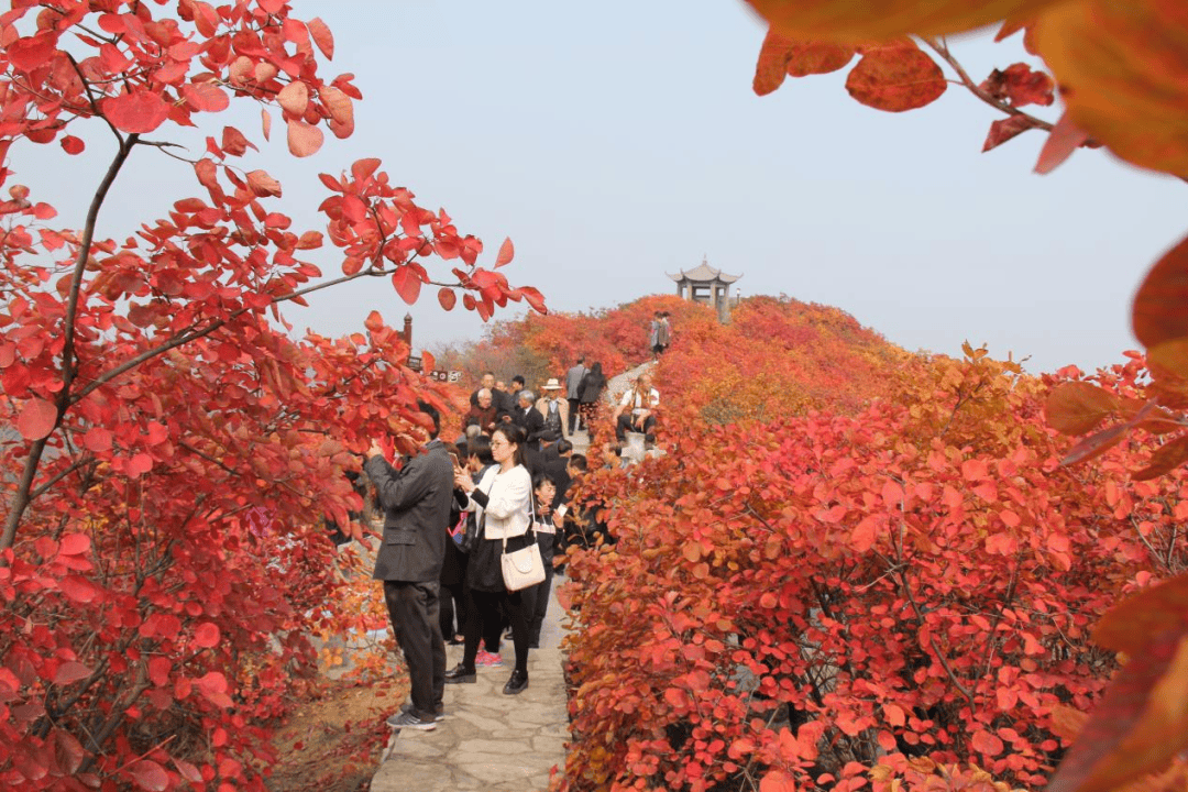 放眼望去,漫山遍野,红叶似火,层林尽染。那炽烈的色彩,比二月的鲜花还要红艳,将整个山峦装扮得如诗如画。目前长寿山景区是附近最具特色、面积最大、种类最多、观赏时间最长的红叶观赏基地。大家穿行在这片红色的海洋中,纷纷驻足拍照,记录下这醉人的瞬间。