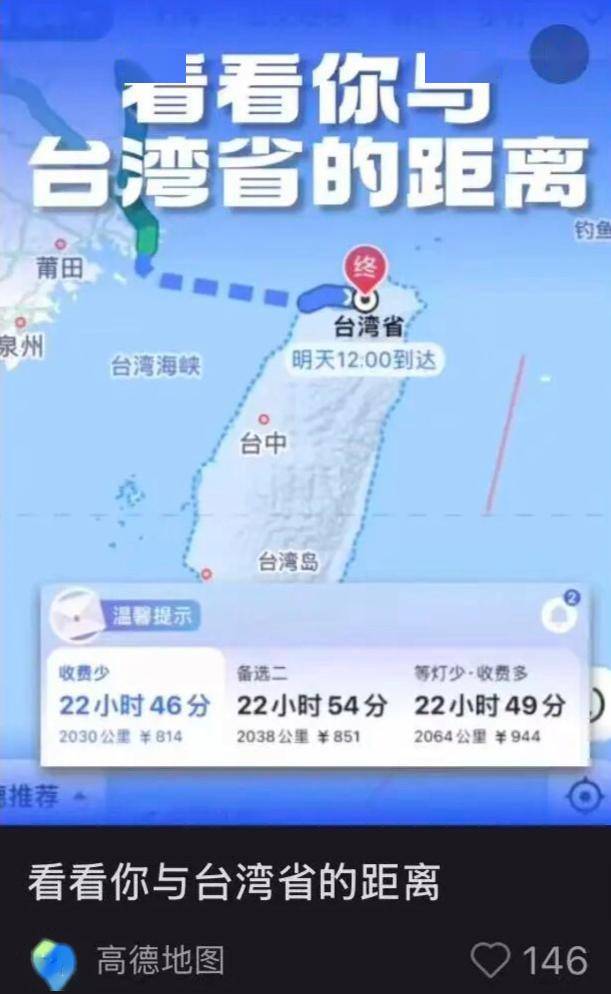 2024年5月,高德地图官方小红书账号发布了一则“看看你与台湾省的距离”的视频,其中显示,用户已可在地图上查询到导航路线。这一功能,无疑让两岸民众的“数字出行”更加便捷。同年9月,高德地图又发文称推出带3D多视角渲染效果的地图,真实还原多视角街道场景,覆盖港澳台地区。这一创新,不仅提升了用户的导航体验,更让两岸的数字世界更加丰富多彩。