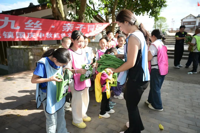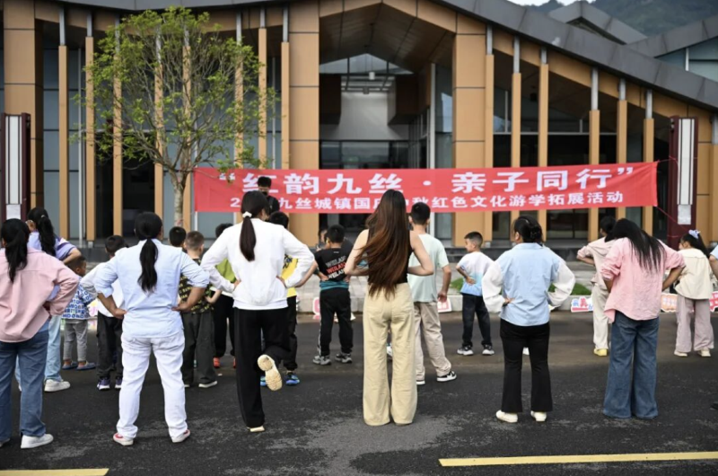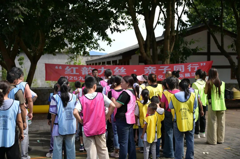 今年国庆节早上八点,九丝城镇在长征国家文化公园(兴文公园)广场举办的“红韵九丝·亲子同行”国庆红色文化游学拓展活动,是一场融合爱国主义教育、红色文化传承与家庭互动体验的综合性主题实践活动。该活动紧扣“赓续红色血脉、厚植家国情怀”的主旨,通过沉浸式、互动式、体验式的设计,引导青少年及家庭在行走中感悟革命精神,在协作中增进亲子情感。其主要内容包括以下几个方面: