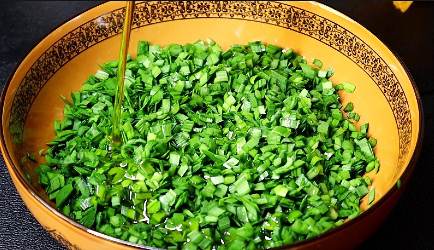 3、不出汤的关键啊,就是加入适量的食用油,然后像我这样搅拌均匀,把韭菜锁住水分。