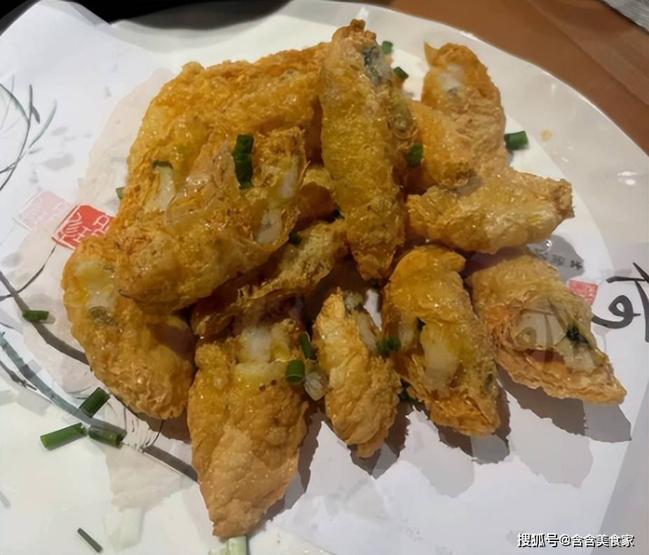 腐皮包黄鱼是一道经典甬菜,外皮酥脆、内馅鲜嫩,选用大黄鱼肉去骨切条,用豆腐皮包裹后油炸而成,口感外酥里嫩,兼具豆香与海鲜的鲜美。多数食客评价其“嘎嘣脆”“入口即化”“鲜香十足”,尤其趁热食用时风味最佳。常见搭配醋、番茄酱或椒盐,能解腻增香,常见于本地菜馆。