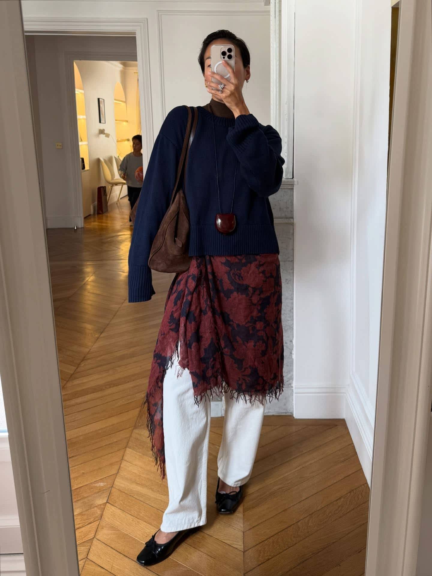 墨蓝色连衣裙,搭配银色高跟鞋,