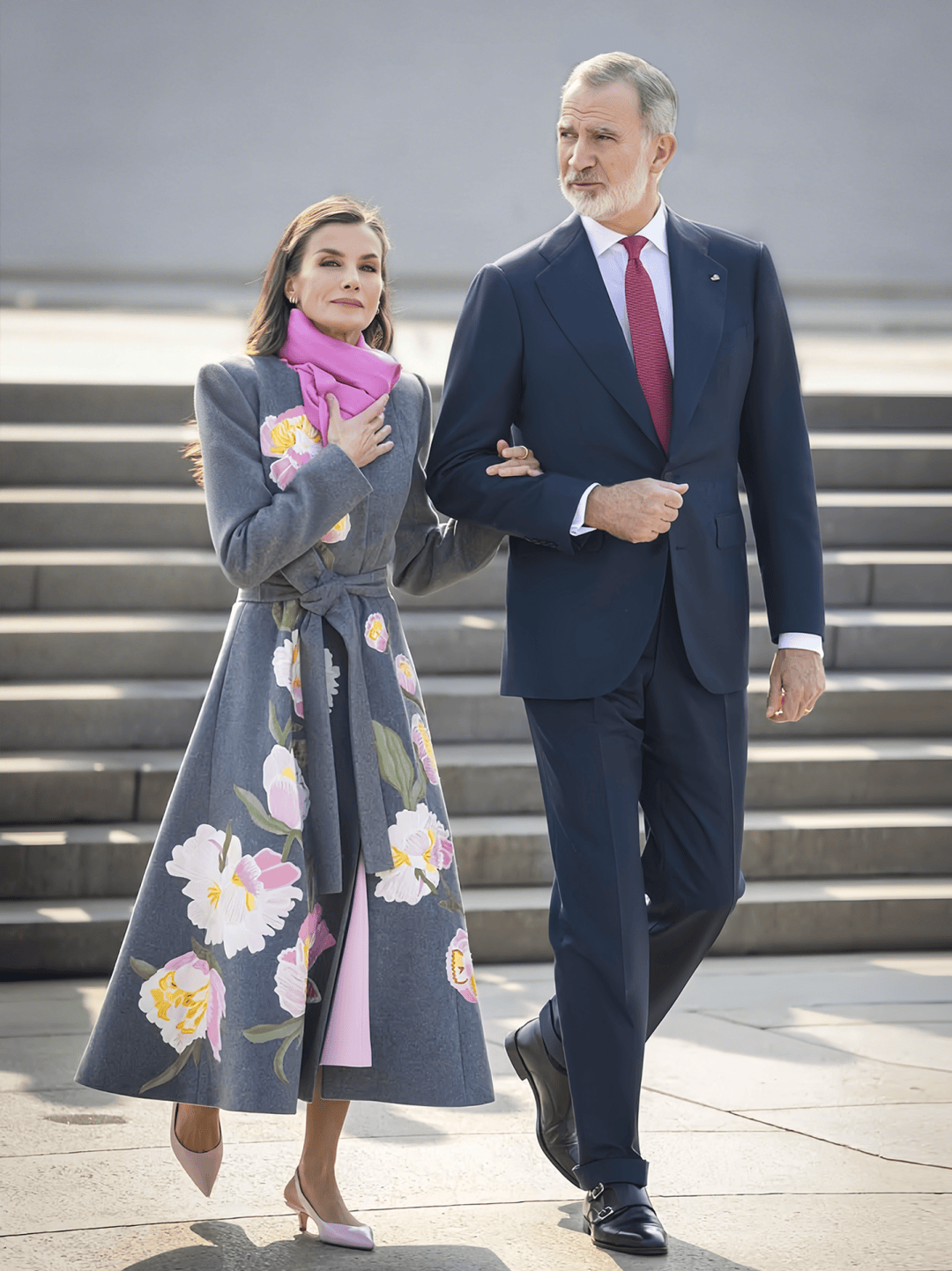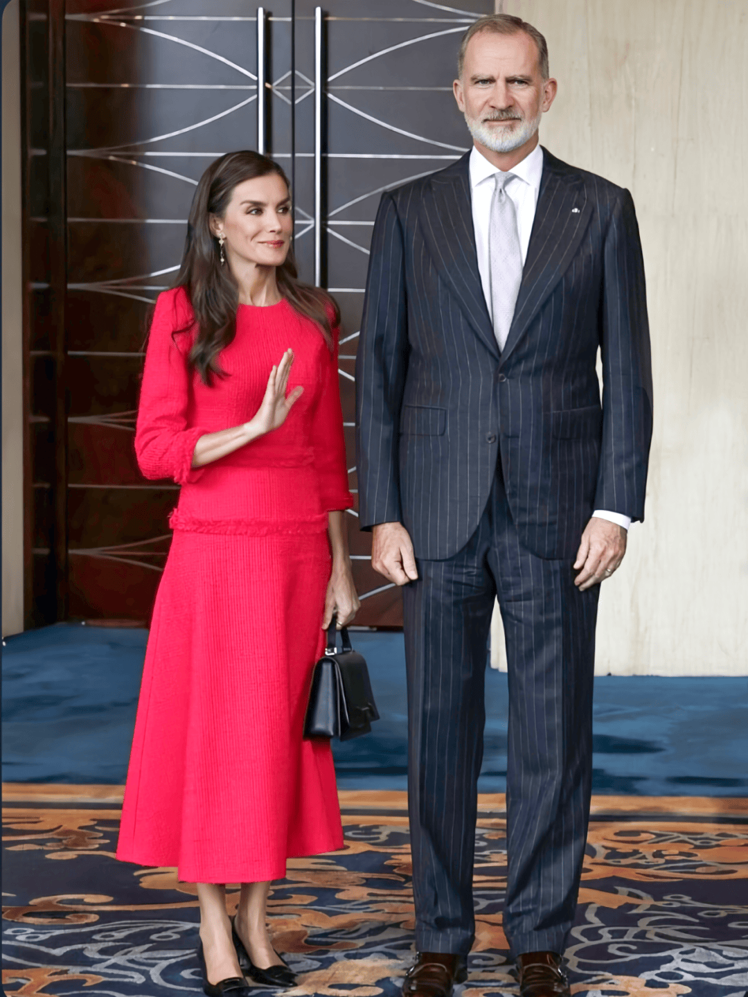 不仅因为这是费利佩六世登基后对我国的首次国事访问,更因为“莱后”——这位以衣品稳定著称、被时尚媒体称为“职业女性模范穿搭教科书”的王后——四天内连换 6 套造型,用行动表达了对这次访问的重视。