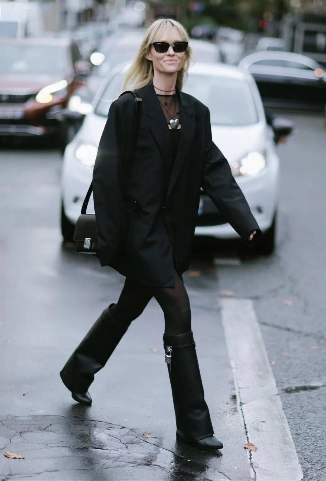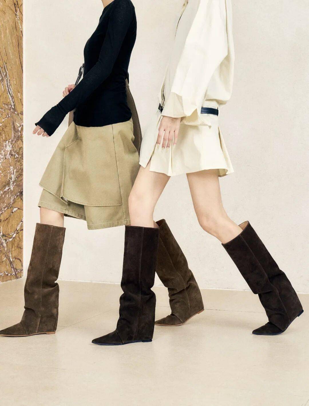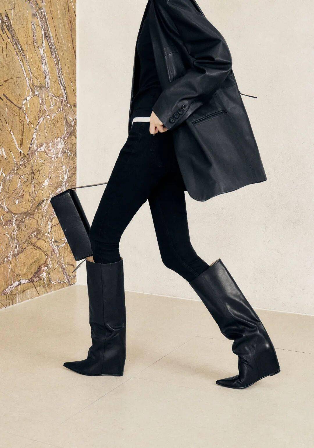 显瘦王炸搭配,褶皱靴与显高法则。
