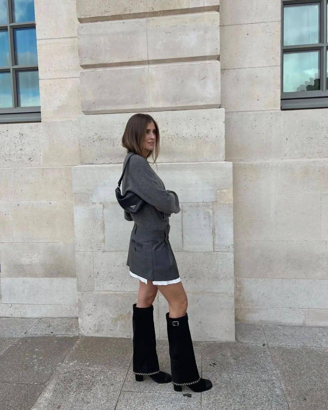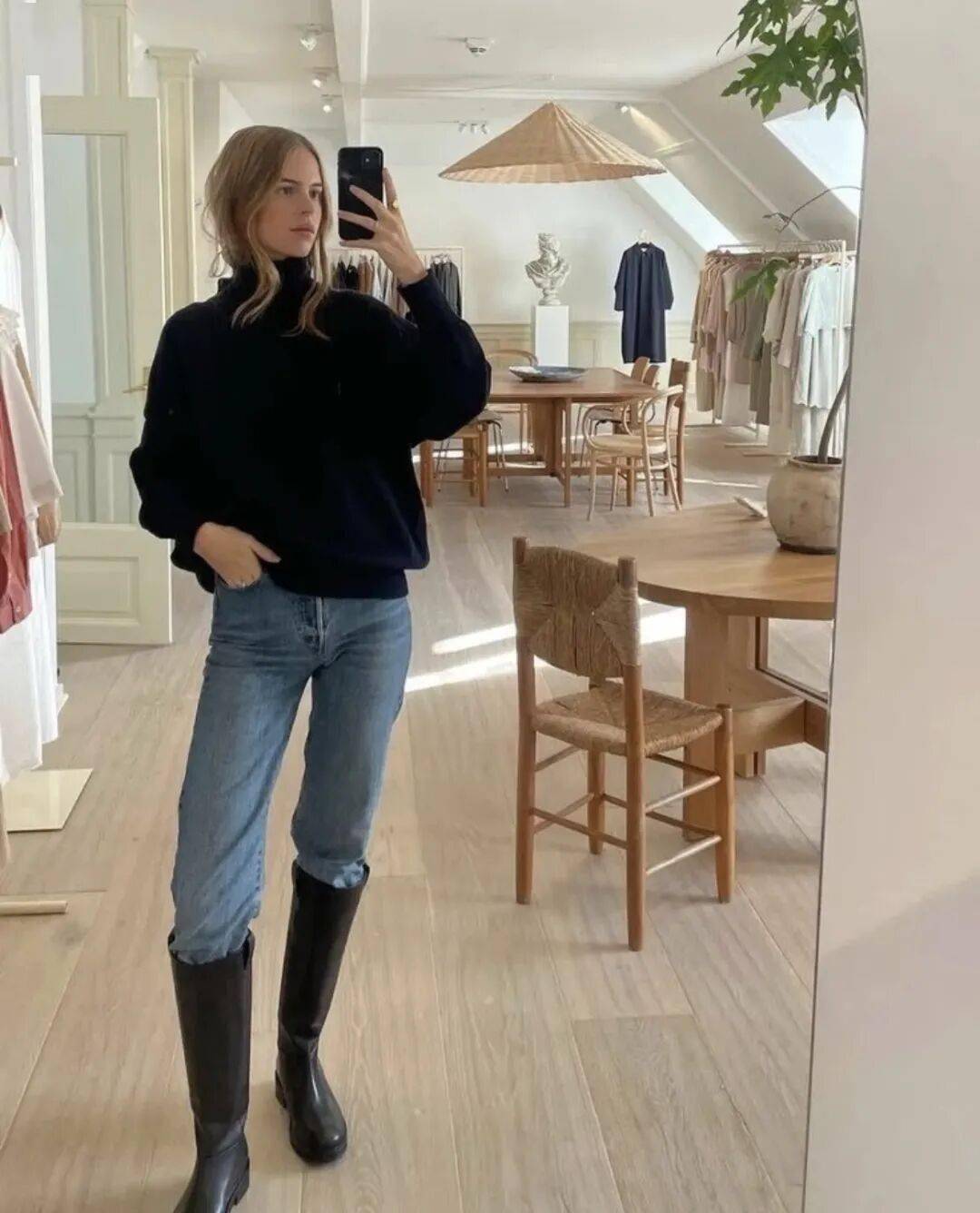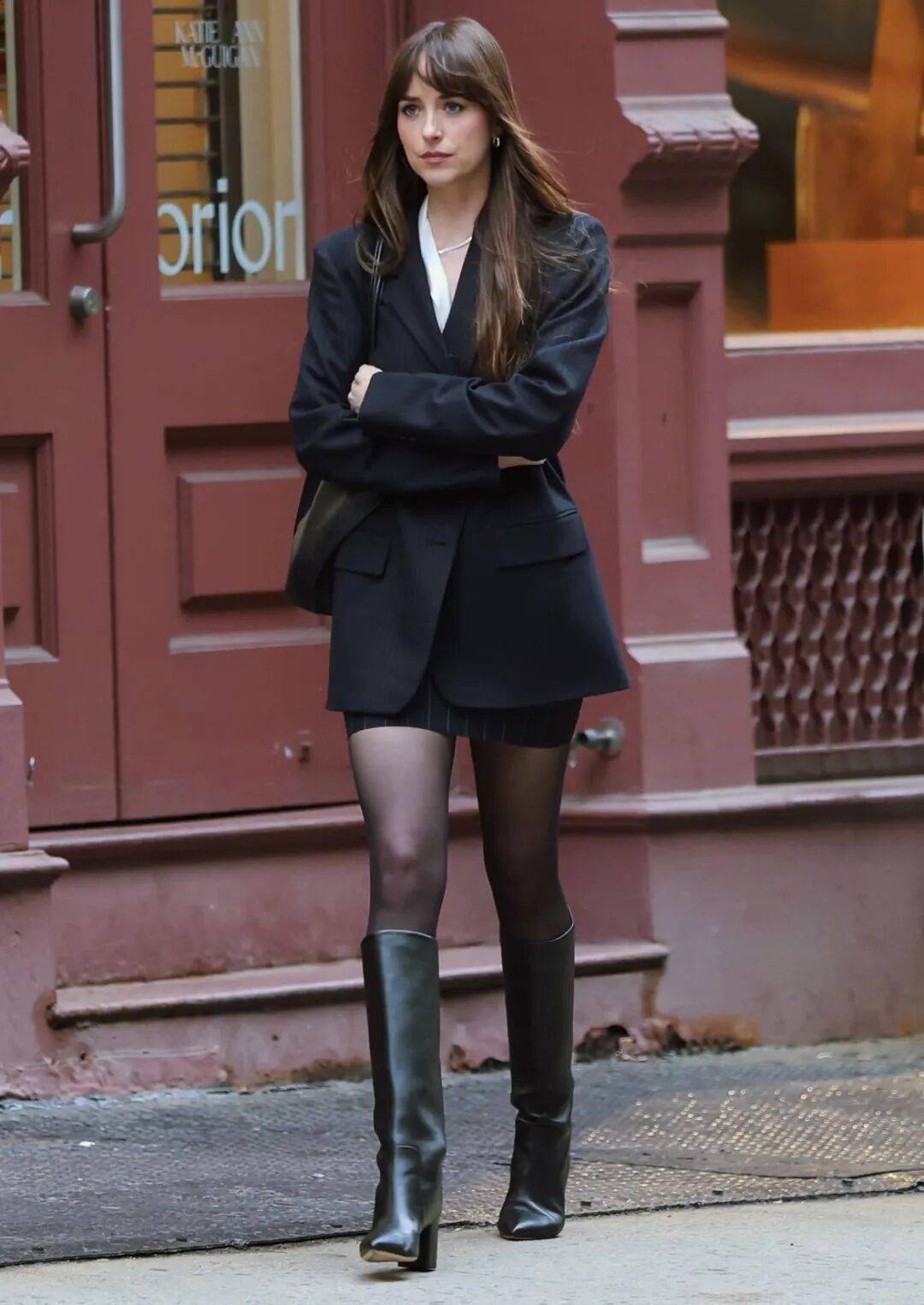 显瘦王炸搭配,褶皱靴与显高法则。
