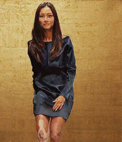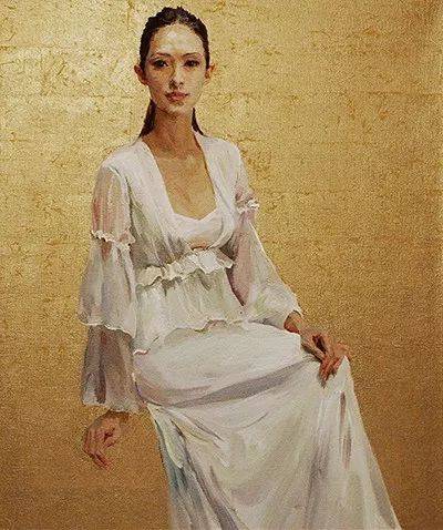 陈丽峰是温州籍演员,毕业于浙江艺术学校,曾出演《笑傲江湖》《西厢记》《龙在江湖》《三坊七巷》等多部影视作品。潘鸿海以其为模特创作的作品中,陈丽峰清纯可爱、气质出众,“淳朴自然、简洁大方”,每一个皱眉和抬眼都流露出沉静的美。潘鸿海运用娴熟的油画技法、独特的构图和强烈的色彩对比,将陈丽峰的含蓄、质朴、纯洁特质表现得淋漓尽致,作品兼具东方情调与现代特点。