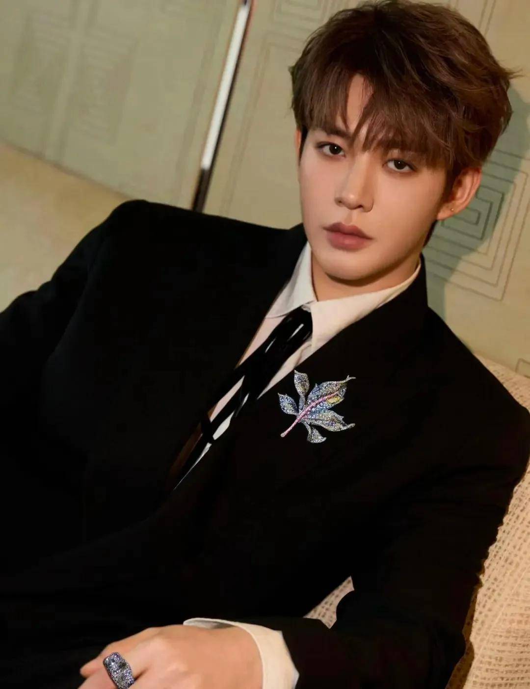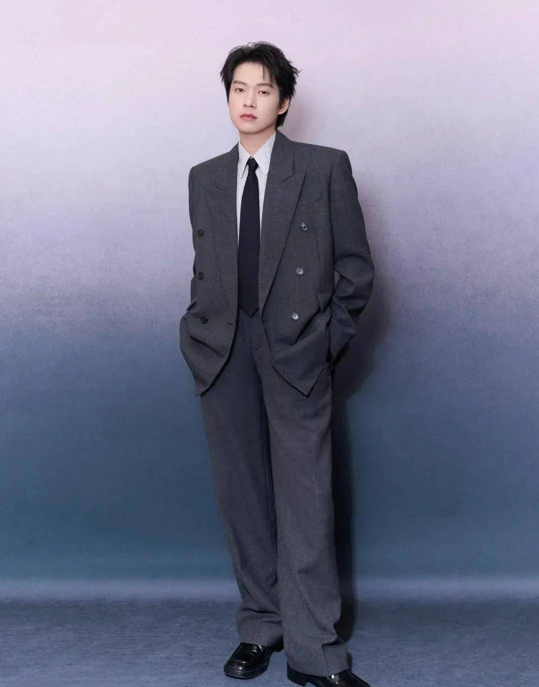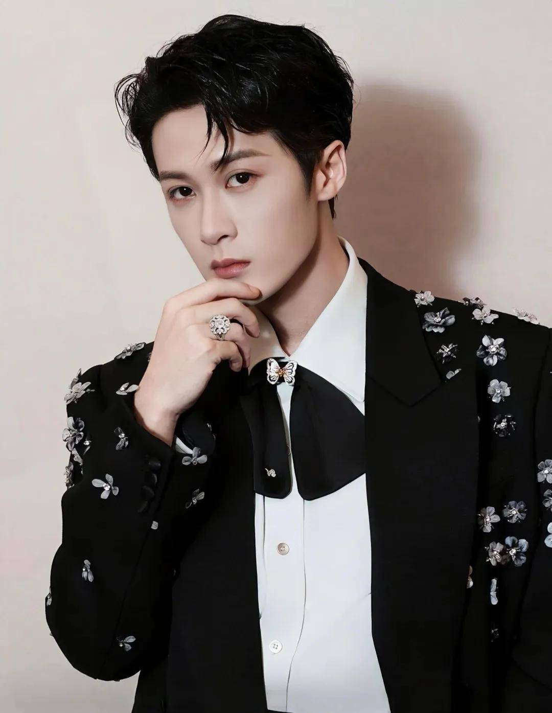 以简约经典的黑色长款西装亮相,内搭白色打底,摒弃繁复装饰却尽显贵气。190cm的身高优势与冷白肤色形成鲜明对比,从容自信的仪态将东方贵公子气质具象化,成为红毯上一道清雅风景。