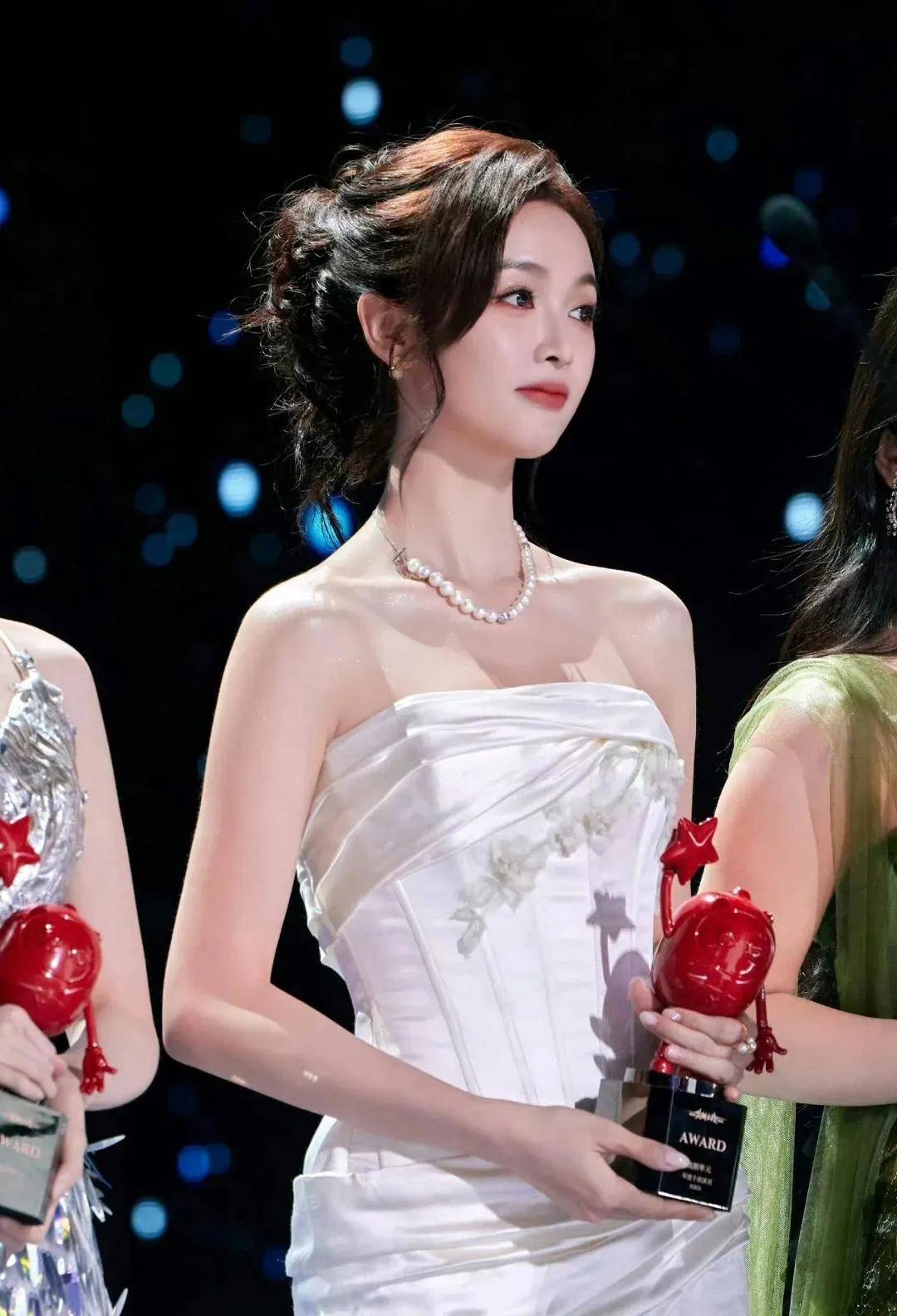 - 吴宣仪:吴宣仪在领奖时身穿一袭来自Ines di Santo的白色拖地裙搭配ReneCaovilla高跟鞋,佩戴了TASAKI的戒指、耳环与项链,整个造型恰到好处。