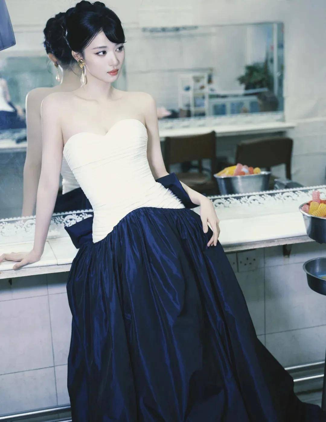 - 王楚然:王楚然上身了Maison Chahad蓝白拼接抹胸礼服,佩戴的Anka Vintage金色水滴珍珠耳环和黑金三狮子珍珠吊坠耳环,Lotusa Vintage多层琉璃珍珠项链使得整个造型更显华丽与贵气。