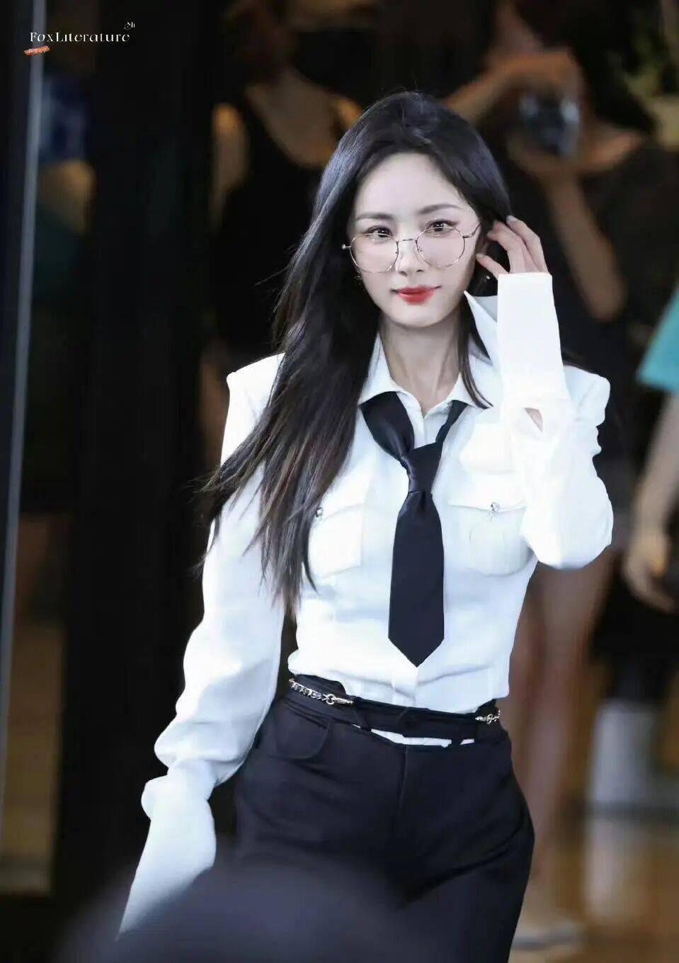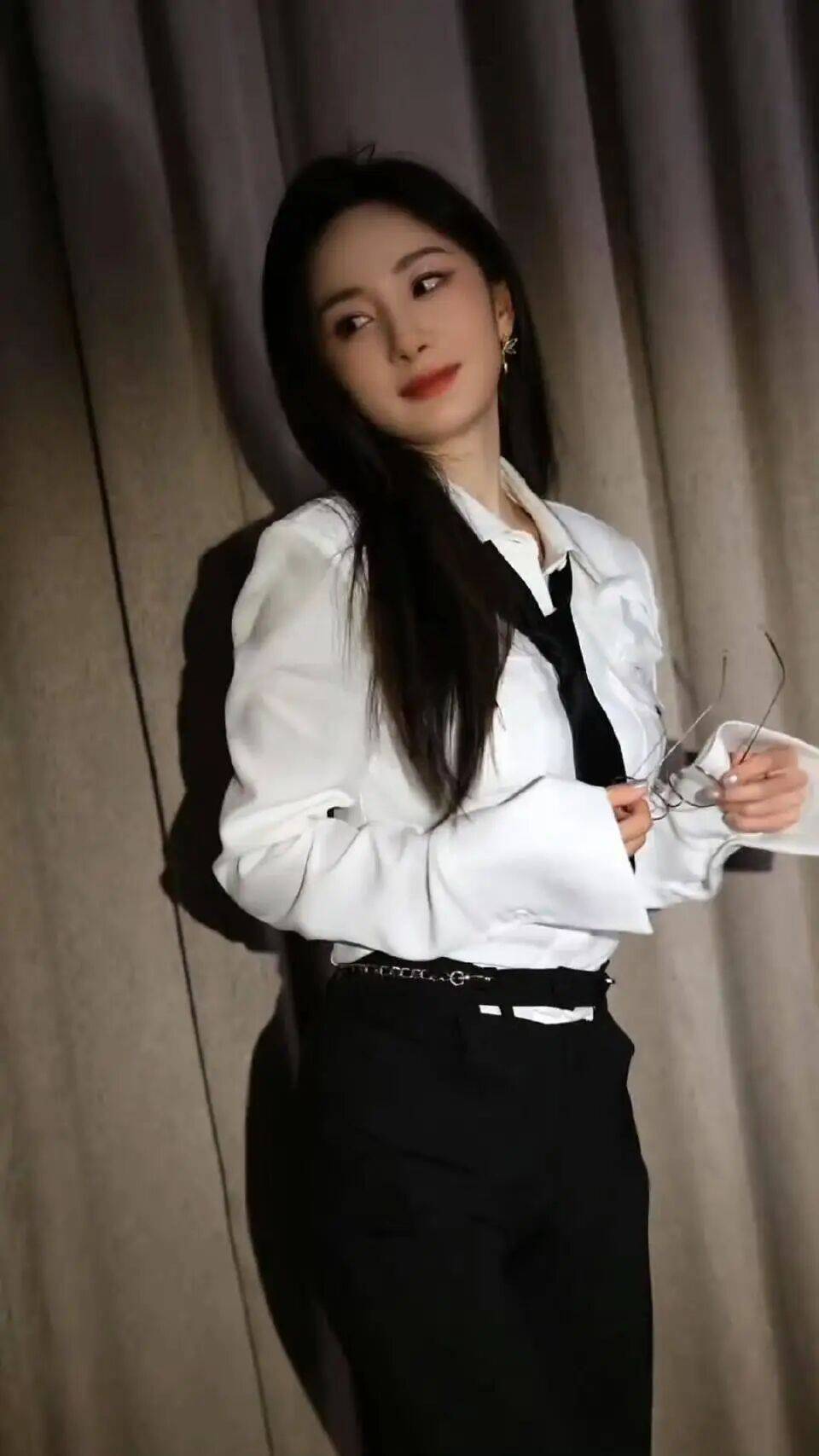 再瞧瞧她身上那套剪裁利落的服装,就像是为她量身定制的战衣。上衣贴合身形,凸显出她纤细的腰肢,而下装则巧妙地勾勒出优越的腰臀比例,每一处线条都流畅自然,仿佛是大自然最完美的杰作。这身造型既有智慧感,又不失力量感,还平添了一抹让人移不开眼的迷人风采。